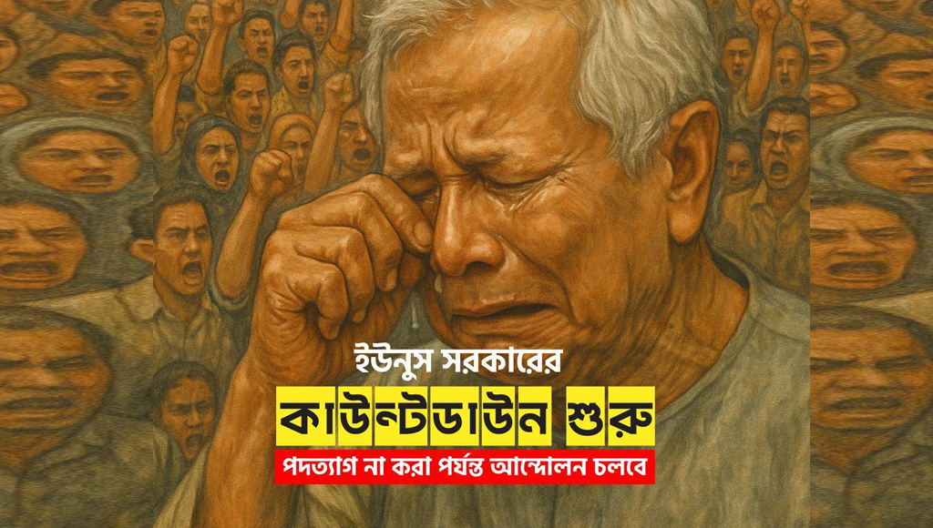ইউনুস পদত্যাগ না করা পর্যন্ত আন্দোলন চলবে—এ ঘোষণা এখন রাস্তায়, জনসভায়, প্রতিটি মানুষের কণ্ঠে প্রতিধ্বনিত হচ্ছে। এই আন্দোলনের সমাপ্তি ঘটবে কেবল তখনই, যখন ইউনুস স্বেচ্ছায় গদি ছাড়বেন অথবা জনগণের ঢেউয়ে তা ভেসে যাবে।