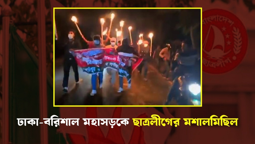 ঢাকা-বরিশাল মহাসড়কের মোস্তফাপুর এলাকা থেকে ছাত্রলীগের নেতা–কর্মীরা একটি ব্যানার হাতে নিয়ে মিছিল বের করেন। তাঁরা বিভিন্ন স্লোগান দিতে দিতে মোস্তফাপুর বাসস্ট্যান্ডের দিকে এগোতে শুরু করেন। মিছিলে অংশগ্রহণকারীদের হাতে ২০ থেকে ২২টি মশাল ছিল। পরে পুলিশের উপস্থিতি টের পেয়ে তাঁরা ছত্রভঙ্গ হয়ে পড়েন। মশালমিছিলে অংশ নেওয়া সবাই মুখে মাস্ক পরা অবস্থায় ছিলেন।