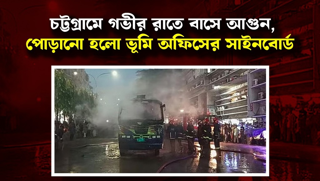চট্টগ্রামে গভীর রাতে সড়কের পাশে পার্ক করে রাখা একটি বাসে আগুন দিয়েছে দুর্বৃত্তরা। এ ছাড়া ভূমি কার্যালয়ের একটি সাইনবোর্ডেও আগুন দেওয়ার ঘটনা ঘটেছে। গতকাল রোববার গভীর রাতে এসব ঘটনা ঘটে।