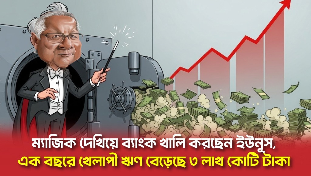দেশের রাজনৈতিক পটপরিবর্তনের পর নোবেল বিজয়ী অধ্যাপক মুহাম্মদ ইউনূসের শাসনামলে টালমাটাল দেশের অর্থনীতি। তাদের লুটপাটে গত এক বছরে খেলাপী ঋণ বেড়ে তিন লাখ কোটি টাকা।