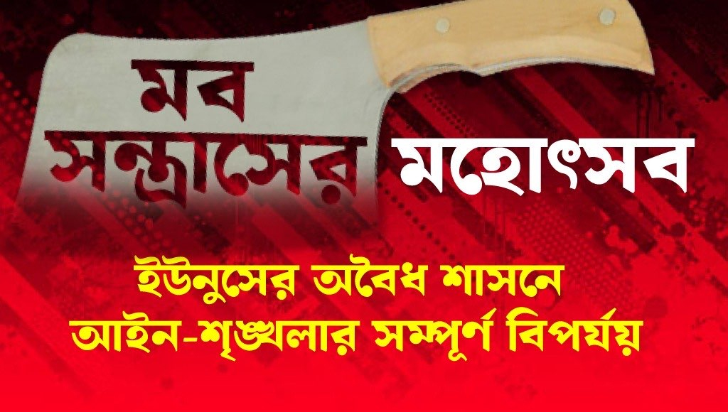 দেশে এখন আইনের শাসন বলে কিছু নেই। আছে জঙ্গলের শাসন। গত দশ মাসে মব সন্ত্রাসে ১৪০ জন মানুষের মৃত্যু হয়েছে, যা দেশের ইতিহাসে সর্বোচ্চ। এই ভয়াবহ পরিসংখ্যান কোনো কাকতালীয় ঘটনা নয়, বরং এটি সরাসরি ২০২৪ সালের জুলাইয়ে সংঘটিত দাঙ্গা এবং তারপর অবৈধভাবে ক্ষমতা দখলের ফলাফল। যে ইউনুস সরকার বিদেশি অর্থায়ন, ইসলামি জঙ্গি সংগঠনের সহায়তা এবং সামরিক বাহিনীর পৃষ্ঠপোষকতায় নির্বাচিত সরকারকে উৎখাত করে ক্ষমতায় এসেছে, তাদের শাসনে এমন নৈরাজ্য হওয়াটাই স্বাভাবিক।