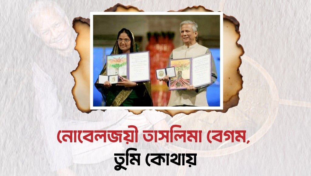 নোবেলজয়ী তাসলিমা বেগম এক সময় এই দেশের আশা, সংগ্রামের প্রতীক ছিলেন। গরিব মানুষের চোখের পানি মুছে দেওয়ার জন্য তিনি নিজের জীবন ব্যয় করেছিলেন। মানুষের দুঃখকে তিনি নিজের বুকে ধারণ করতেন, আর সেই সহানুভূতির আলোই তাকে নিয়ে গেলো আন্তর্জাতিক সম্মানের শীর্ষে।