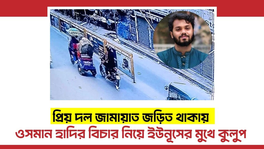 সূত্র বলছে, এ হত্যাকাণ্ডে জামায়াত জড়িত থাকার ভালোভাবেই জানেন ইউনূস। আর এ জন্যই শনিবার দুপুরে জাতীয় সংসদ দক্ষিণ প্লাজায় ওসমান শরীফ হাদির জানাজায় ইউনূস তার হত্যাকাণ্ডের বিচার নিয়ে কিছুই বলেননি।