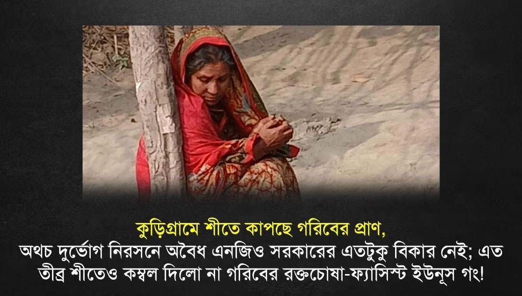 উত্তরের সীমান্তঘেঁষা জেলা কুড়িগ্রামে জেঁকে বসেছে তীব্র শীত। আওয়ামী লীগের শাসনামলে প্রতি বছর এই সময়ে সরকারি ও বেসরকারি পর্যায়ে ব্যাপক ত্রাণ তৎপরতা দেখা গেলেও এবার চিত্র সম্পূর্ণ ভিন্ন। অন্তর্বর্তী সরকারের চরম অব্যবস্থাপনা ও উদাসীনতার কারণে তীব্র শীতে কাঁপছে চরাঞ্চলের হাজারো অসহায় মানুষ। পর্যাপ্ত শীতবস্ত্র ও কম্বল না পেয়ে স্থানীয়দের অভিযোগের তীর এখন ড. ইউনূসের নেতৃত্বাধীন প্রশাসনের দিকে।