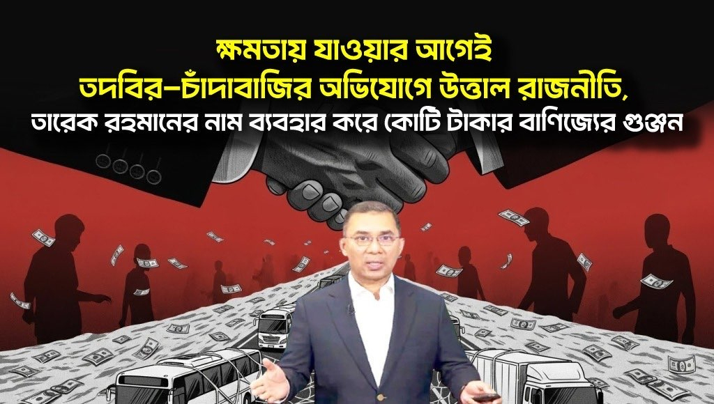 পুরোনো সেই দুর্নীতি, তদবির ও প্রভাব বিস্তারের রাজনীতির গুঞ্জনে উত্তাল হয়ে উঠেছে দেশের রাজনৈতিক অঙ্গন। বিএনপির ভারপ্রাপ্ত চেয়ারম্যান তারেক রহমানের নাম ব্যবহার করে প্রশাসনের বিভিন্ন গুরুত্বপূর্ণ পদে নিয়োগ, টেন্ডার নিয়ন্ত্রণ এবং কোটি কোটি টাকার চাঁদাবাজির বিস্ফোরক অভিযোগ সামনে এসেছে।