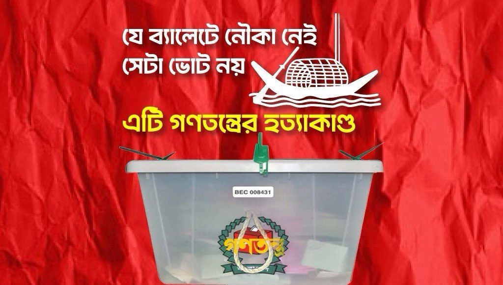 “যে ব্যালেটে নৌকা নেই, সেটা আবার কিসের নির্বাচন?”—এই প্রশ্ন এখন দেশের প্রতিটি মহল্লা, পাড়া-প্রতিপাড়া গর্জে উঠছে। সাধারণ মানুষ থেকে রাজনীতিবিদ, সকলে একটাই কথা বলছে: এটি নির্বাচন নয়, এটি গণতন্ত্রের নির্মম অবমাননা।