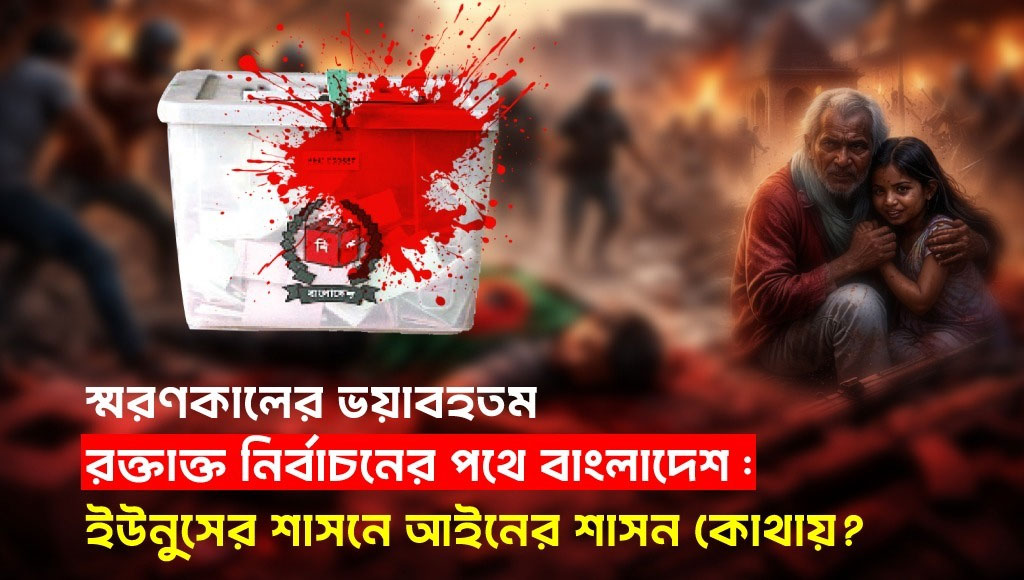 আইয়্যামে ইউনুসীয়ার অন্ধকার নেমে এসেছে বাংলাদেশে। যে দেশ একদিন স্বাধীনতার জন্য লড়াই করেছিল, সেই দেশ আজ পরাধীন হয়েছে বিদেশি মদদপুষ্ট এক গোষ্ঠীর হাতে। যে দেশে গণতন্ত্র ছিল, আজ সেখানে চলছে জঙ্গি ও সামরিক ছত্রছায়ায় পরিচালিত এক ভণ্ড শাসন। মানুষ হত্যা হচ্ছে, সংখ্যালঘুরা আতঙ্কে আছে, আইনের শাসন ভূলুণ্ঠিত হয়েছে, অস্ত্র ছড়িয়ে পড়েছে দেশজুড়ে। আর এসবের মাঝেই ইউনুস সরকার আয়োজন করছে এক প্রহসনের নির্বাচন, যা না হবে স্বাধীন, না হবে সুষ্ঠু।