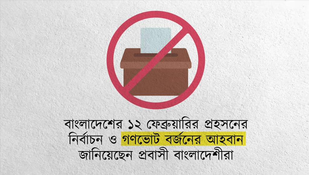প্রবাসী বাংলাদেশীগণ আজ এক বিবৃতিতে বলেন, আওয়ামী লীগ ও সমমনা দলগুলোর প্রতি দেশের ৫০ শতাংশ ভোটারের সমর্থন রয়েছে। তাদের বাদ দিয়ে কোনো গণতান্ত্রিক নির্বাচন হতে পারে না। তা ছাড়া নির্বাচন করার মতো পরিবেশও নেই। মবসন্ত্রাস, ধর্ষণ, গুম, খুনের মাধ্যমে দেশে এক ভয়ের পরিবেশ তৈরি করা হয়েছে।