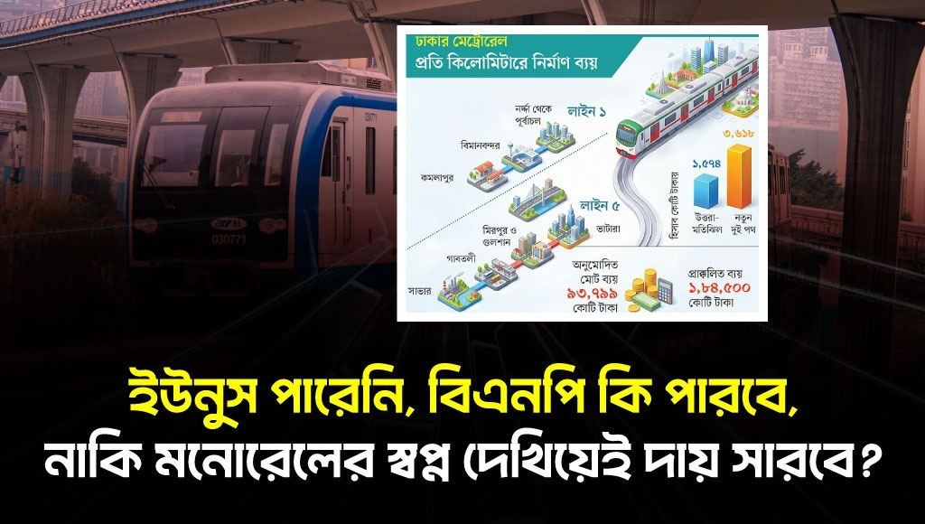 বিএনপি দেখাবে কিনা, সেটাই এখন দেখার বিষয়। কিন্তু আপাতত যা দেখছি, তারেক রহমান মনোরেলের গল্প বলছেন। মানে পুরনো সমস্যার সমাধান না করে নতুন প্রতিশ্রুতি। রাজনীতির এই চিরপরিচিত কায়দাটা অন্তত পরিবর্তন হয়নি।