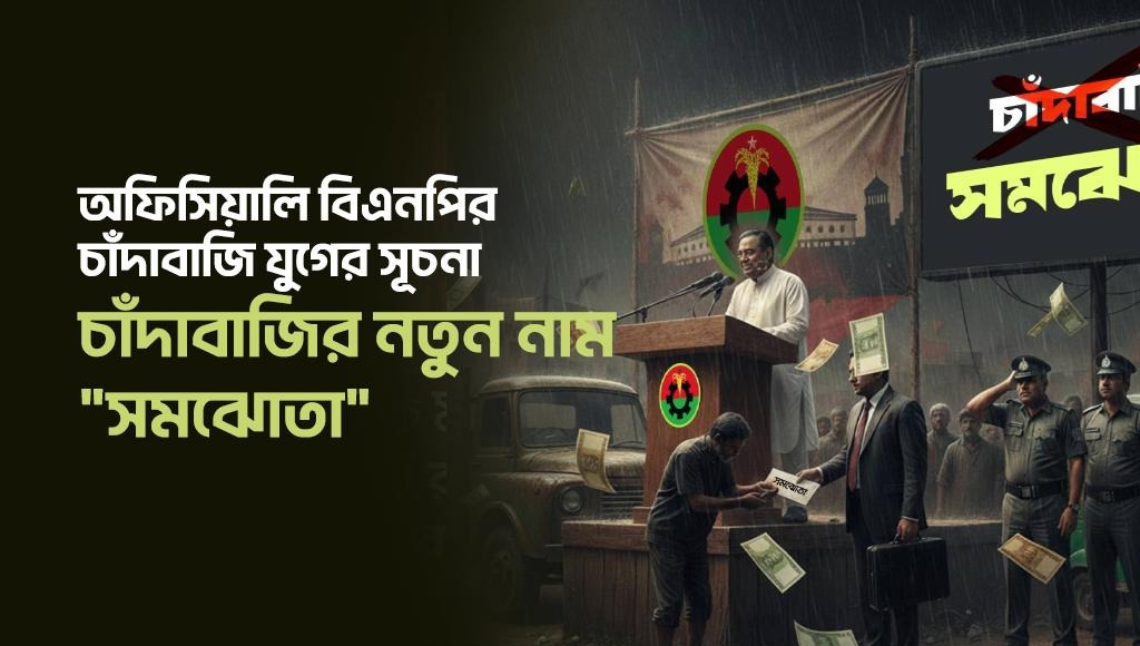 বাংলার ইতিহাসে তাহলে কি নতুন যুগের সূচনা হলো যেখানে চাঁদাবাজি এখন একপ্রকার বৈধ পেশা? যেখানে রাজনৈতিক ছত্রছায়ায় থেকে টাকা তোলা হবে, আর তাকে বৈধতার মোড়ক পরিয়ে দেওয়া হবে?