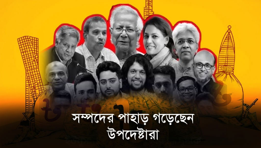 সম্পদ সবচেয়ে বেশি বেড়েছে চার উপদেষ্টার। তাঁরা হলেন প্রধান উপদেষ্টা অধ্যাপক মুহাম্মদ ইউনূস এবং উপদেষ্টা আদিলুর রহমান খান, বিধান রঞ্জন রায় পোদ্দার ও অধ্যাপক ওয়াহিদউদ্দিন মাহমুদ। তাঁদের সম্পদ কোটি টাকার বেশি বেড়েছে।