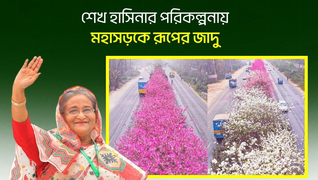 পিচঢালা ধূসর মহাসড়কের বুক চিরে এখন যেন বইছে রূপকথার বসন্ত। ঢাকা-ময়মনসিংহ মহাসড়কের গাজীপুর অংশে চোখ মেললেই দেখা যাচ্ছে রক্তরাঙা পলাশ আর শুভ্র-গোলাপি জাপানি ‘ক্যাসিয়া রেনিজেরা’র মেলা। দেশি-বিদেশি ফুলের এই অভূতপূর্ব মেলবন্ধনে মহাসড়কটি এখন আর কেবল যাতায়াতের মাধ্যম নয়, বরং বিনোদনের এক রঙিন ক্যানভাসে পরিণত হয়েছে।