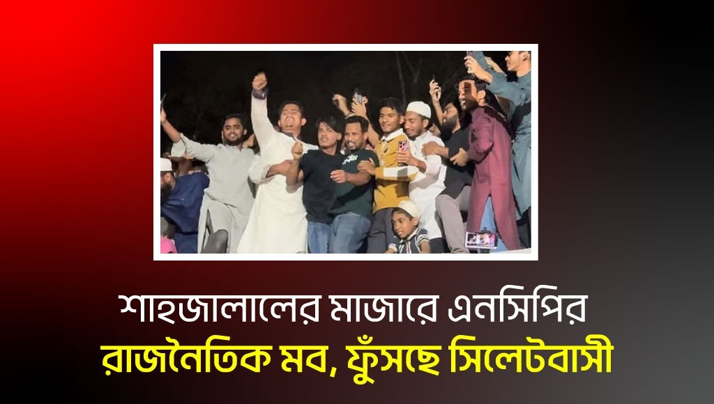 হজরত শাহজালাল (রহ.)-এর মাজার প্রাঙ্গণের দীর্ঘদিনের ধর্মীয় গাম্ভীর্য ও রাজনৈতিক শিষ্টাচার লঙ্ঘনের অভিযোগ উঠেছে নবগঠিত জাতীয় নাগরিক পার্টির (এনসিপি) বিরুদ্ধে। বুধবার (৪ মার্চ) রাতে মাজারের নারী ইবাদতখানার ছাদে উঠে দলটির কেন্দ্রীয় নেতাদের রাজনৈতিক স্লোগান দেওয়ার ঘটনায় সিলেটজুড়ে তীব্র ক্ষোভ ও প্রতিক্রিয়া সৃষ্টি হয়েছে।