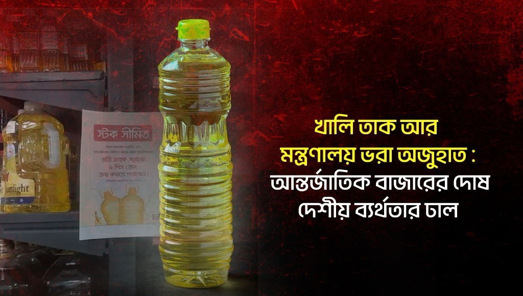 এই পরিস্থিতিতে সরকার কী করছে? বাণিজ্য মন্ত্রণালয়ে চিঠি জমা পড়েছে। সেই চিঠি নাকি এখনো বিবেচনাধীন। বিবেচনা চলছে, আর মানুষ রান্নাঘরে হিসাব করছে এই মাসে তেলে কতটা কাটছাঁট করা যায়।