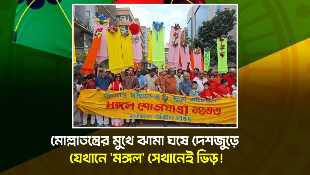 কিন্তু এই আনন্দের আড়ালে একটা সত্যি কথা বলতে ইচ্ছে করছে। প্রকৃতি নাকি শূন্যস্থান পছন্দ করে না। কথাটা একদম ঠিক। দেখুন না, ঢাকা বিশ্ববিদ্যালয়ের চারুকলা থেকে এবার যখন ‘মঙ্গল শোভাযাত্রা’ নামটা কেড়ে নেওয়ার চাপ এসেছে, যখন জামাতের ইশারায় নাম পাল্টে দিতে হলো, তখন কি হলো? শূন্যস্থানটা ভরাট করে দিল ধানমন্ডির বর্ষবরণ পর্ষদ। তারা সেই আগের চেনা নামেই শোভাযাত্রা করল, ‘মঙ্গল শোভাযাত্রা’ নামেই।