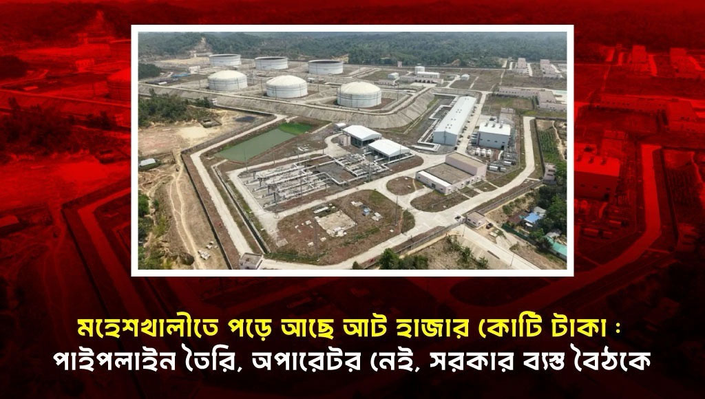 মহেশখালীতে বঙ্গোপসাগরের তীরে দাঁড়িয়ে আছে একটা বিশাল অবকাঠামো। ২২০ কিলোমিটার পাইপলাইন, ছয়টা বিশাল তেলের ট্যাংক, পাম্পিং স্টেশন, সব আছে। দুই লাখ টন তেল ধরার ক্ষমতা আছে। শুধু নেই একটা অপারেটর। আর সেই অপারেটর না থাকার কারণে প্রায় দুই বছর ধরে আট হাজার কোটি টাকার এই অবকাঠামো রোদে পুড়ছে, বৃষ্টিতে ভিজছে, কাজের কাজ কিছু হচ্ছে না।