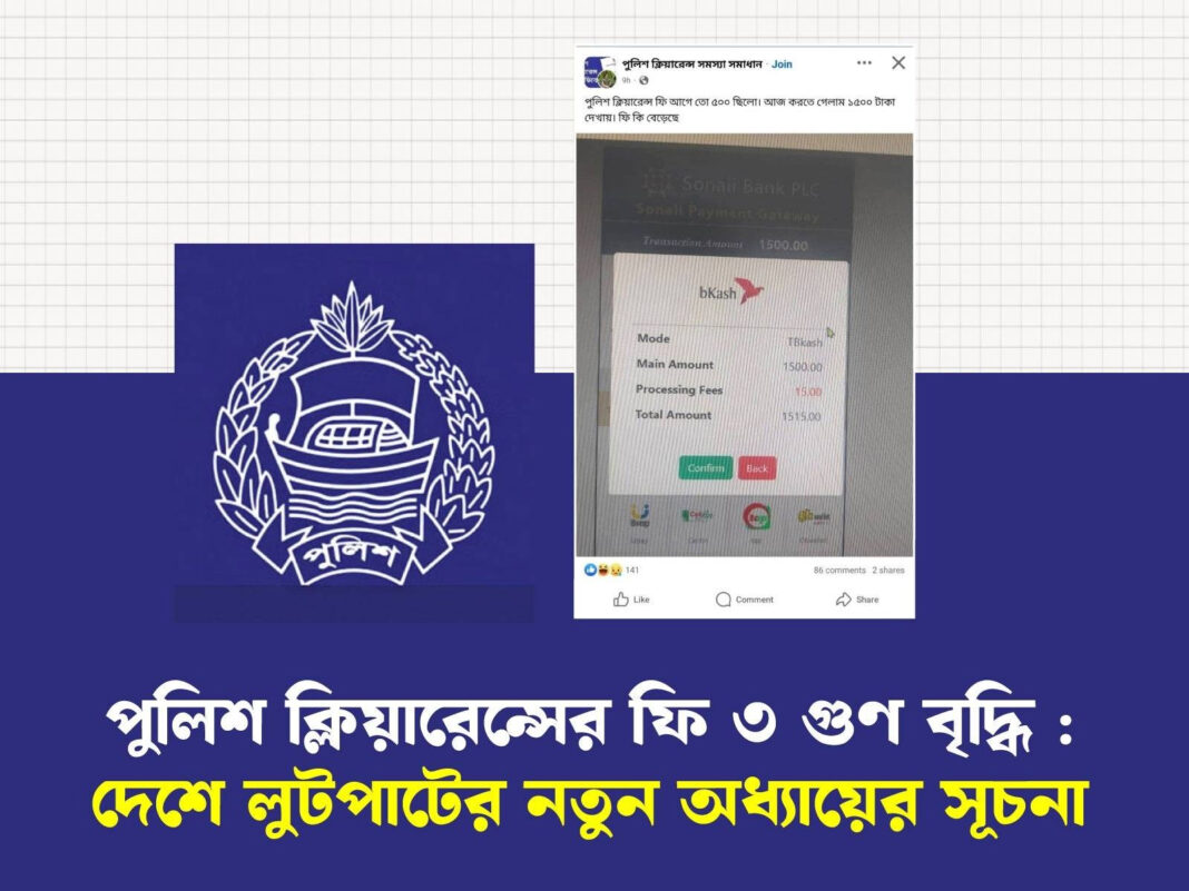 পুলিশ ক্লিয়ারেন্স সার্টিফিকেটের ফি হঠাৎ করে ৫০০ টাকা থেকে ১৫০০ টাকার ওপরে চলে যাওয়া শুধু একটা সংখ্যার খেলা নয়, এটা একটা দেশের অর্থনৈতিক লুটপাটের নতুন মাত্রা। এই ফি বৃদ্ধির পেছনে যে দুটি কারণ দেখানো হচ্ছে, তার প্রতিটিই আসলে একটা বড়ো প্রশ্নের সামনে দাঁড় করিয়ে দেয় এই সরকারের বৈধতা আর তাদের ক্ষমতা দখলের পদ্ধতিকে।