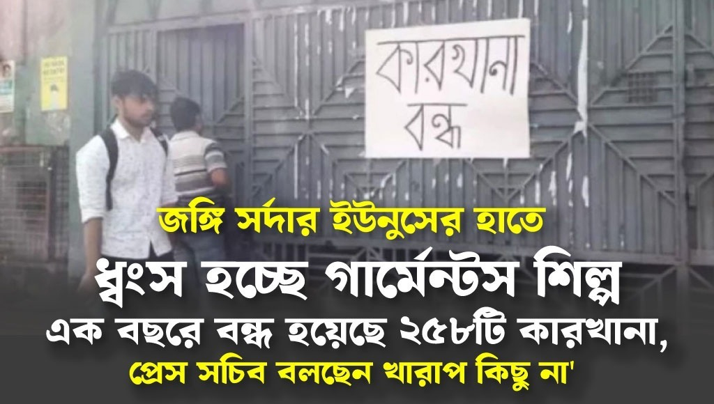 এক বছরে বন্ধ হয়েছে ২৫৮টি কারখানা, প্রেস সচিব বলছেন খারাপ কিছু না। লক্ষ লক্ষ শ্রমিকের শ্রমের কোন মূল্যই নাই অবৈধ সরকারের কাছে? বাংলাদেশের রপ্তানি আয়ের সিংহভাগই আসে পোশাক খাত থেকে। আবার এই খাতেই দেশের জনশক্তির বিশাল একটি অংশ কর্মরত আছেন। কিন্তু এই খাতকে শক্তিশালি করার বদলে ধ্বংস করে দেওয়ার পাঁয়তারা করছে ড ইউনুস ও তার জঙ্গিবাহিনী।